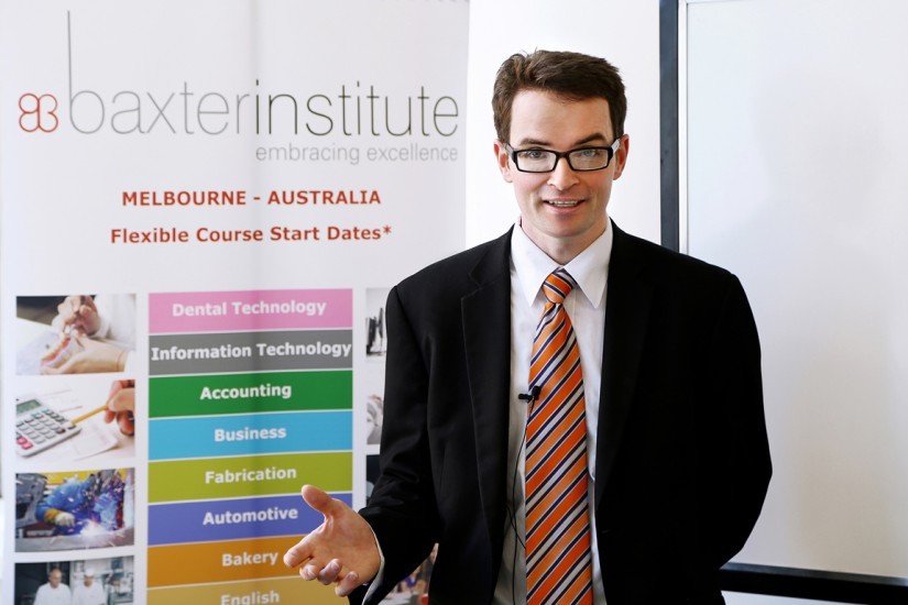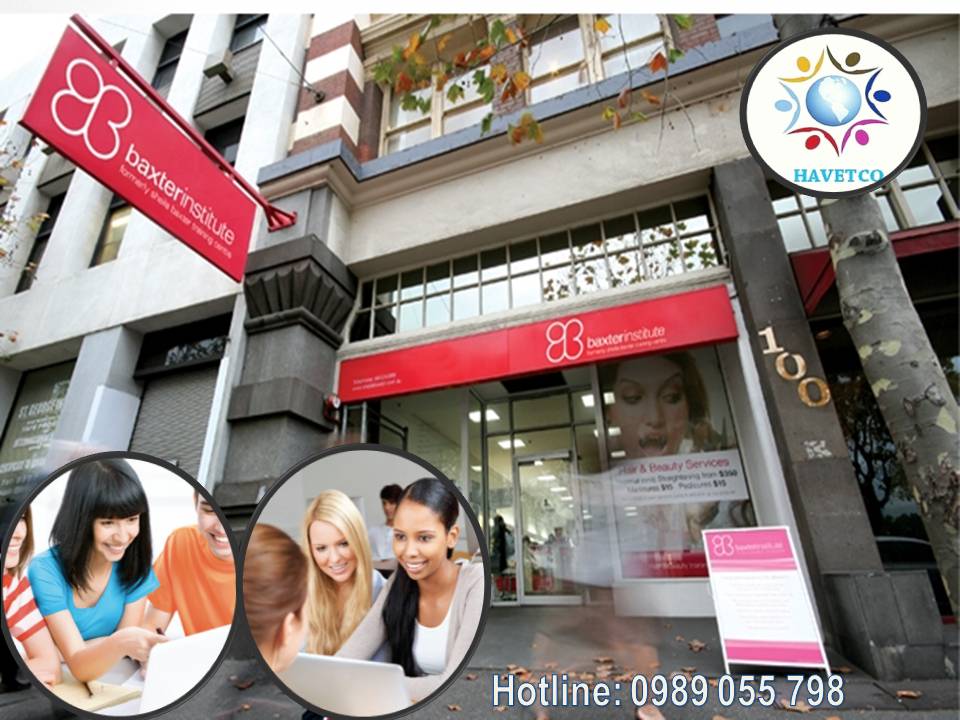 Học viện Baxter được thành lập từ năm 1971, nằm ngay trung tâm thành phố Mebourne với các ngành nghề đào tạo đa dạng bao gồm: Thẩm mỹ, Làm tóc, Kỹ thuật nha khoa, Công nghệ ô tô, Kỹ thuật cơ khí, Kinh doanh, Tiếng anh, Công nghệ thông tin và Kế toán. Các khoá học của học viên Baxter được Chính phủ Úc công nhận và có đăng ký tiêu chuẩn CRICOS đảm bảo chất lượng cho sinh viên quốc tế.