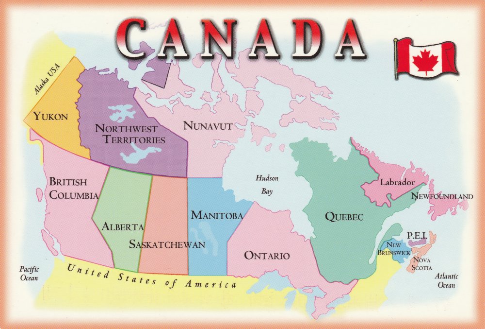 Canada là đất nước có diện tích lớn thứ 2 trên thế giới, sau Nga. Vì lãnh thổ rộng lớn, nên Canada có 6 múi giờ khác nhau và các vùng khí hậu cũng khác nhau. Canada bao gồm 3 vùng lãnh thổ và 10 tỉnh bang.